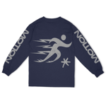 Long sleeve shirt is made from 100% heavyweight cotton, constructed for a structured fit and lasting durability. This garment features oversized MotionForever graphics printed on the chest, back, and sleeves. Order true to size.