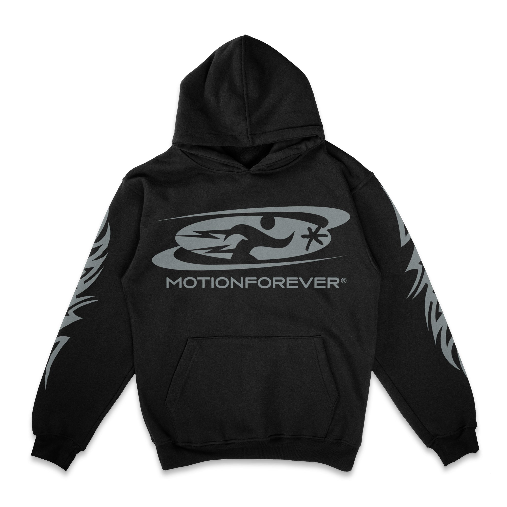 Hoodie is crafted from structured fleece for lasting comfort and shape. Features MotionForever graphics printed on the chest, back, and sleeves. Fits true to size for a standard look, or size up for an oversized fit.