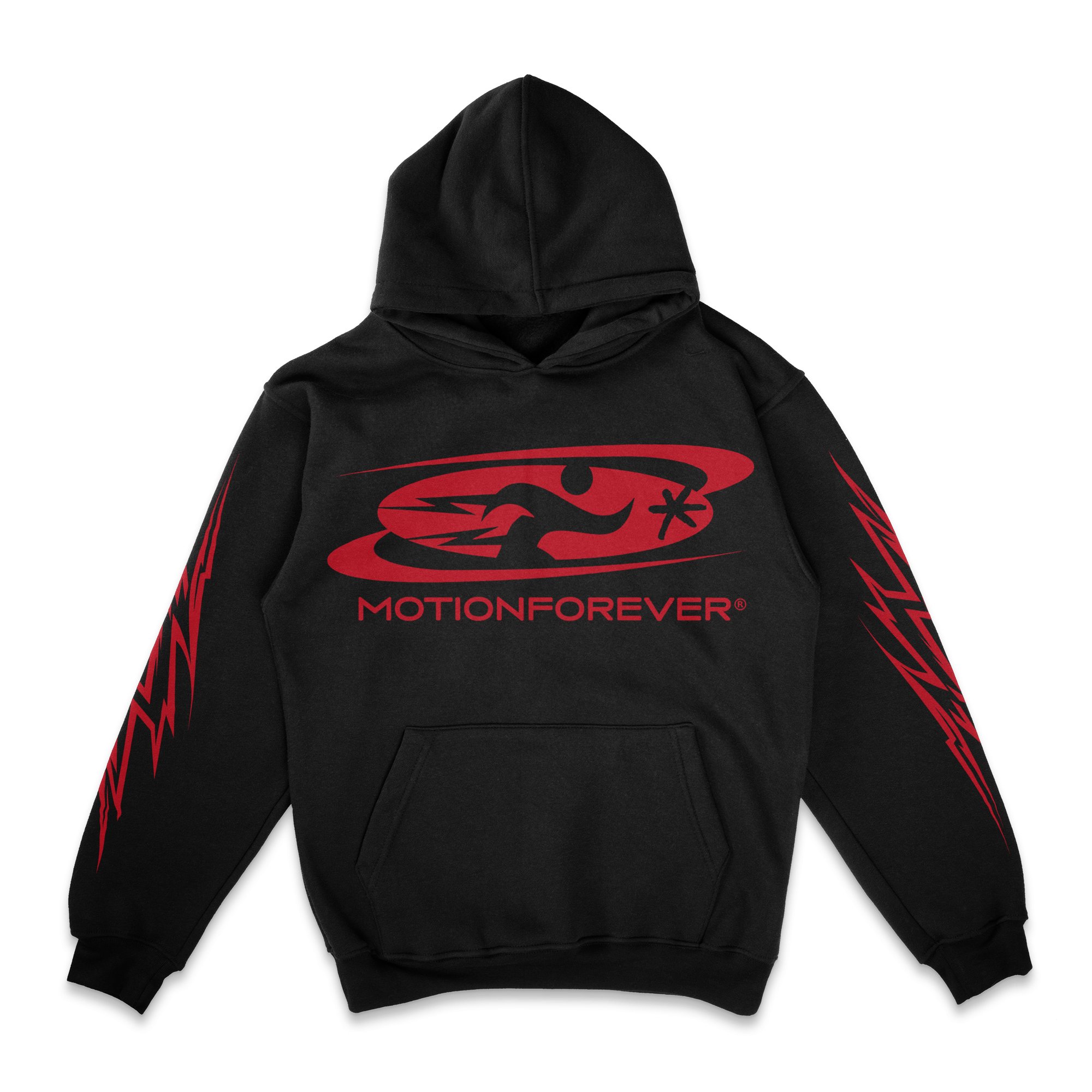 Hoodie is crafted from structured fleece for lasting comfort and shape. Features MotionForever graphics printed on the chest, back, and sleeves. Fits true to size for a standard look, or size up for an oversized fit.