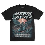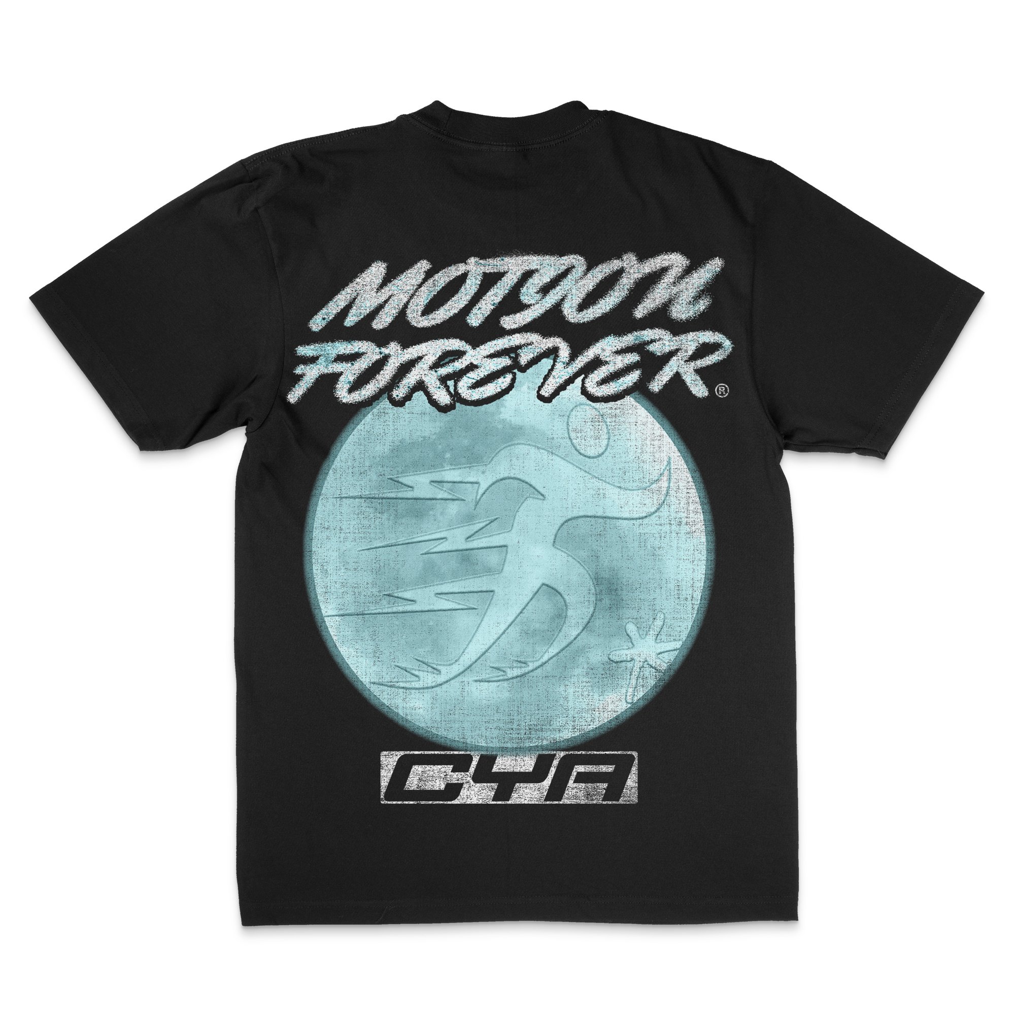 Shirt is made from 100% heavyweight cotton, constructed for a structured fit and lasting feel. This garment features MotionForever graphics printed on the chest and back. Order true to size.