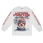Long sleeve shirt is made from 100% heavyweight cotton, constructed for a structured fit and lasting durability. This garment features oversized MotionForever graphics printed on the chest, back, and sleeves. Order true to size.